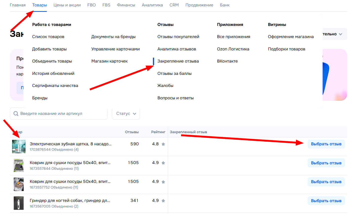 Как закрепить отзыв в карточке