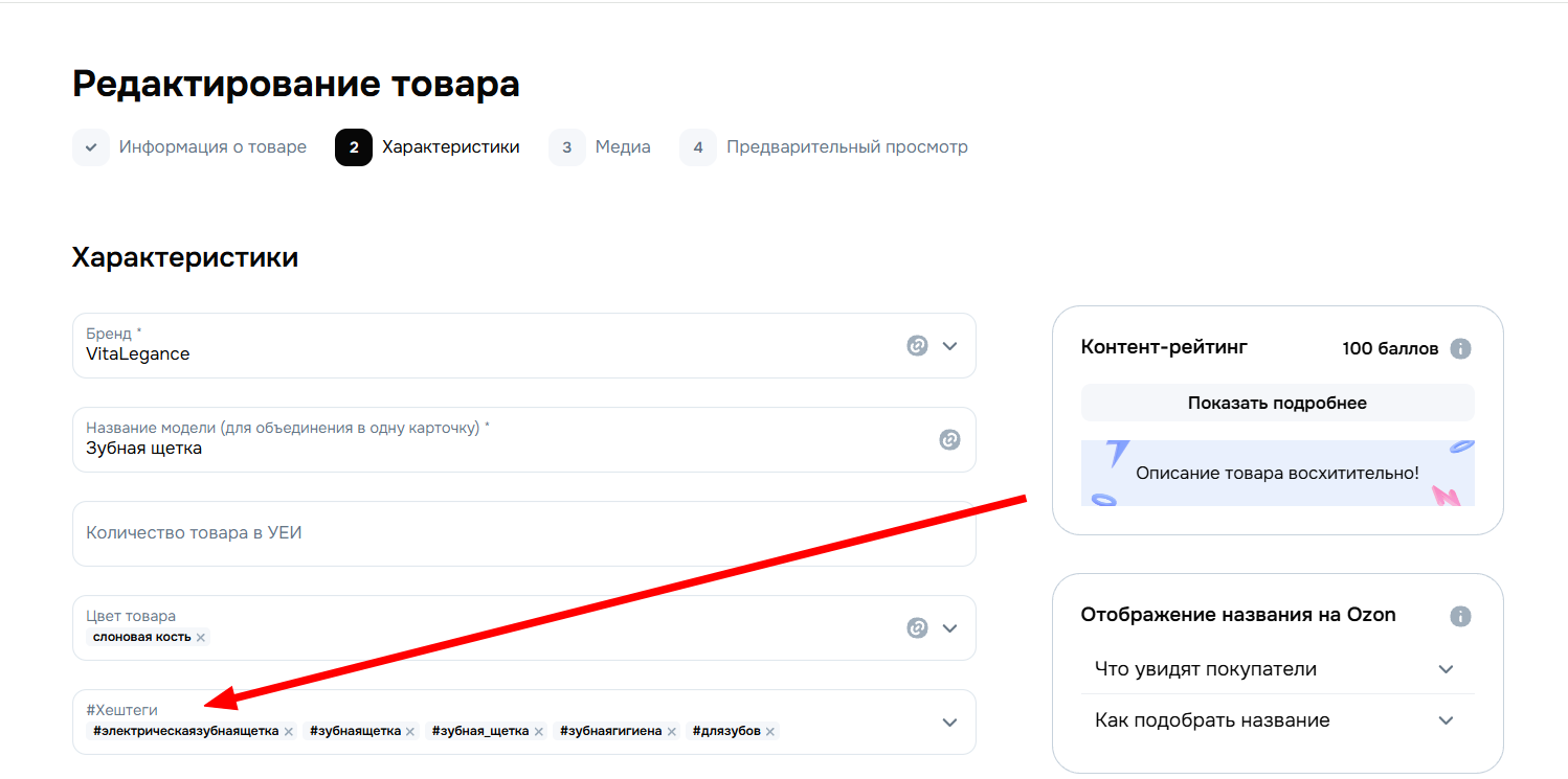 Если смотреть глазами продавца, хэштеги на Ozon - это элемент упаковки карточки товара. Примерно на одном уровне с фото, описанием, характеристиками и так далее.
